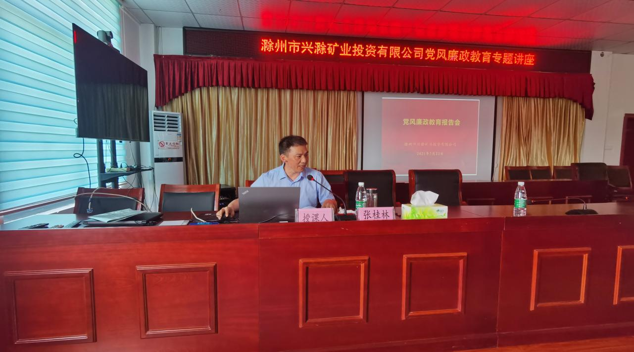 為進一步推深做實黨史學(xué)習(xí)教育,切實加強公司黨風(fēng)廉政建設(shè)和反腐敗工作,促進黨風(fēng)廉政教育在基層一線落地生根,7月23日,市礦投公司邀請市紀(jì)委監(jiān)委駐市財政局紀(jì)檢監(jiān)察組副組長張桂林赴興明礦業(yè)調(diào)研指導(dǎo)并作黨風(fēng)廉政教育專題講座。公司經(jīng)營層及相關(guān)工作人員約30余人聆聽了講座。