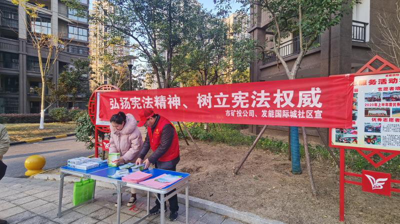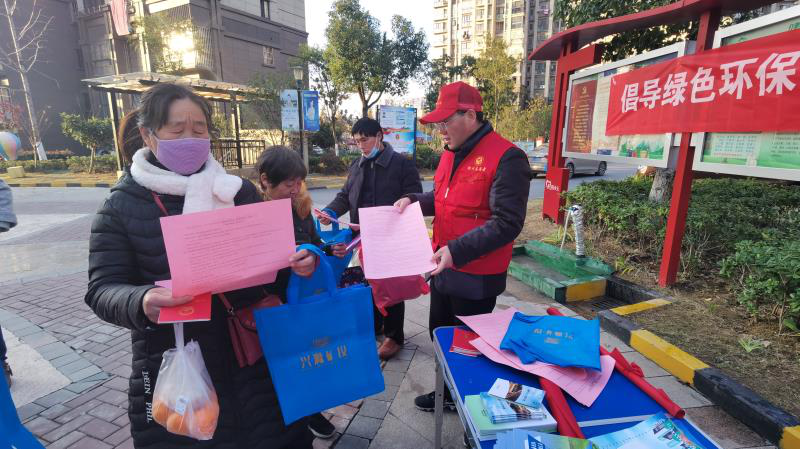 志愿者們還開展了豐富多樣的宣傳活動,一是宣傳綠色環(huán)保生活理念,通過向居民發(fā)放宣傳單頁、環(huán)保購物袋的方式,開展綠色環(huán)保生活理念宣傳,呼吁群眾積極參與到文明創(chuàng)建中來。二是宣傳憲法精神,在第七個“國家憲法日”來臨之際,向居民宣傳習近平總書記關于憲法的重要論述精神,發(fā)放《中華人民共和國憲法》讀本、現(xiàn)場為居民普及憲法知識。三是開展“人人參與、共創(chuàng)全國禁毒示范城市”宣傳,引導社區(qū)居民了解毒品、拒絕毒品、遠離毒品。
